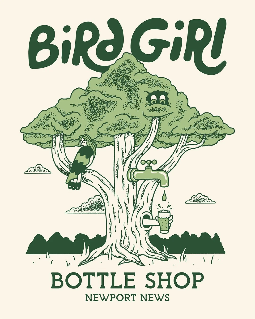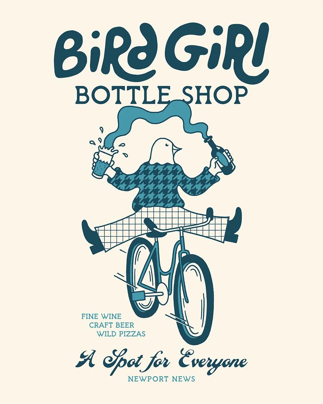 Bird Girl Bottle Shop is a…well, it’s a bottle shop, obviously. But it’s also the vision of a couple that moved to Newport News, VA with the goal of creating a space for their new community to come together, hang out, and enjoy themselves in a space that feels more like hanging out at your best friend’s house than going to a stuffy, upscale bottle shop. I did my best to capture their brand’s approachable identity with an illustrated logo, hand drawn logotype, type system, and color palette.