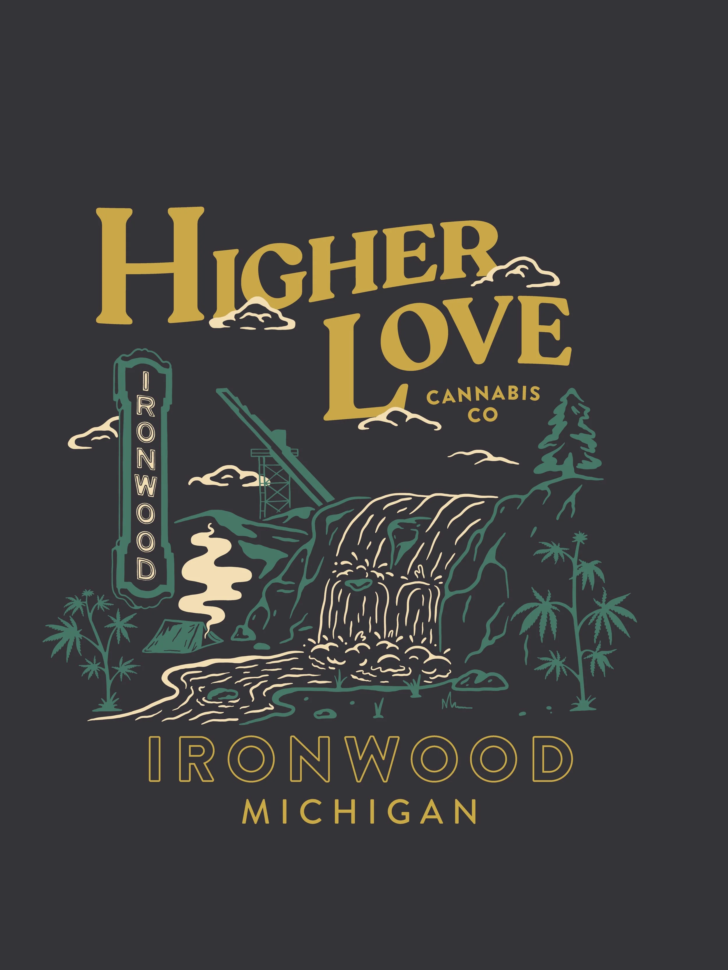 Higher Love Cannabis Co. is the go-to source for the best cannabis products in Michigan’s Upper Peninsula, sourcing the best brands and growing their own award-winning cannabis. I have been working with the Higher Love team since 2022 to help them grow their brand by creating a consistent, unique visual identity across many brand touchpoints for their 9 locations (packaging design, print & digital ads, weekly ecommerce graphics, brochures, billboards, apparel designs, menu templates, flyers & posters, pitch decks, social media, and many more).